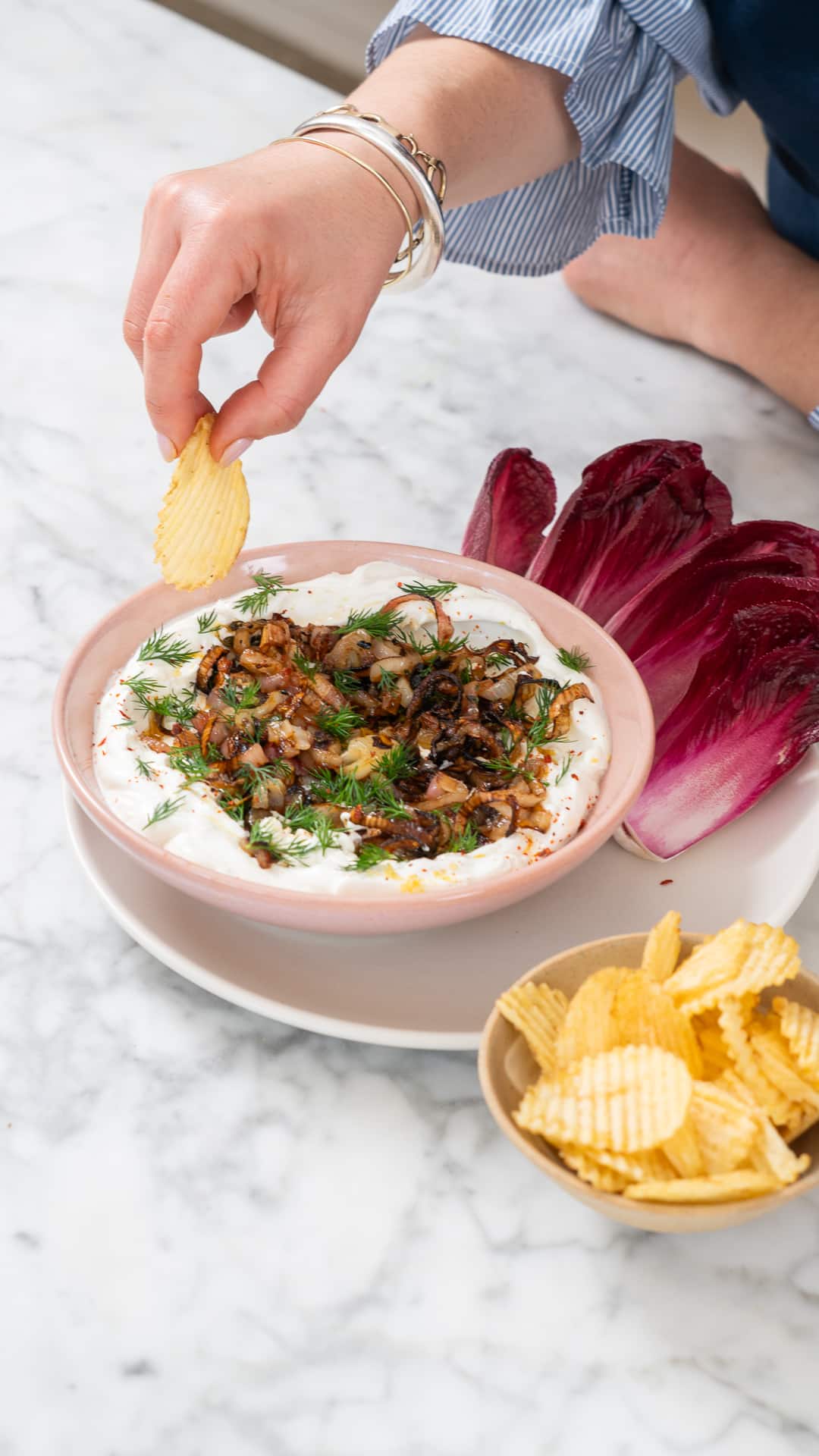 minutesA good carb or cracker is essential here, or endive if you prefer a cleaner crunch. I’m partial to a crinkle crisp myself.