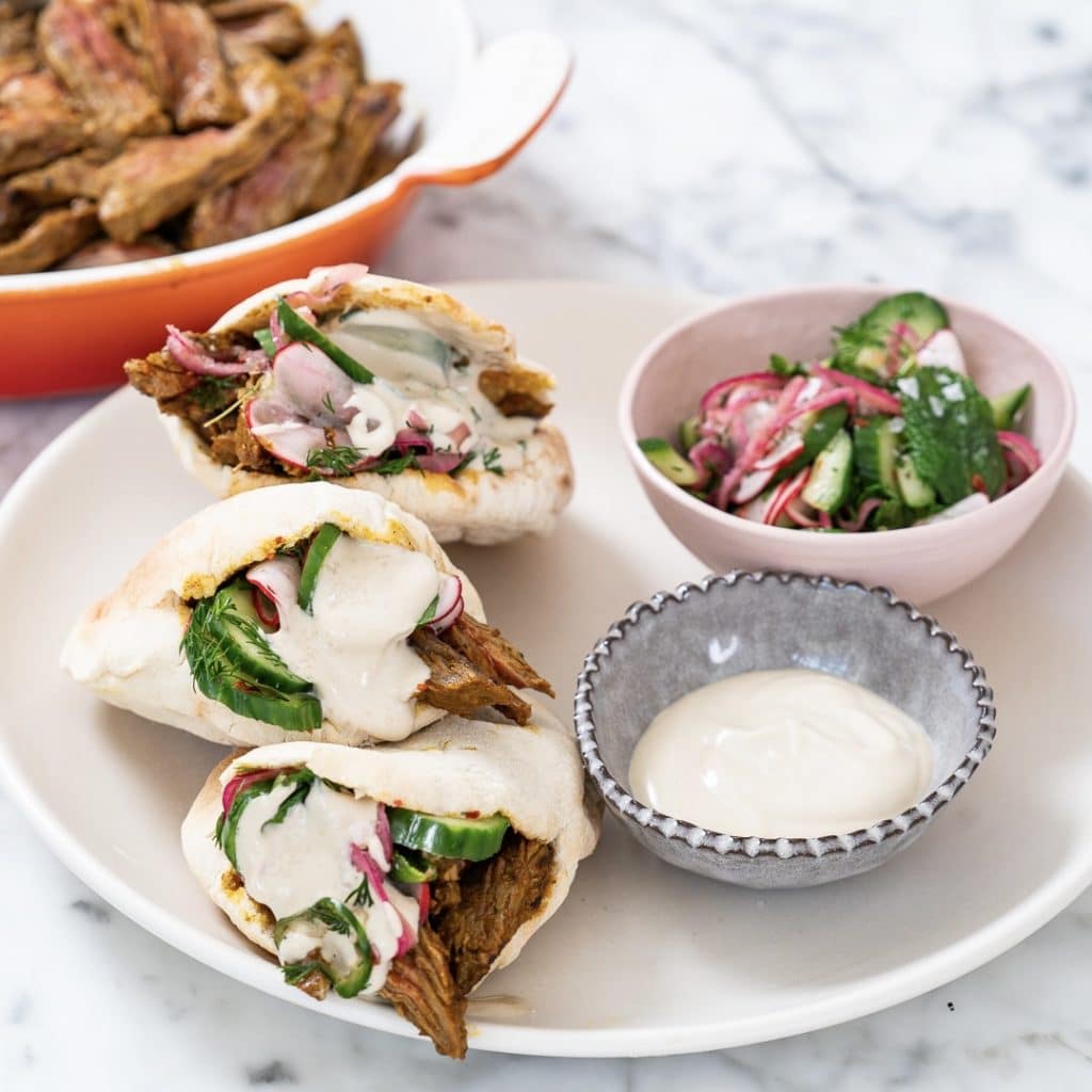 Shawarma Skirt Steak Pita & a Quick Cucumber Salad